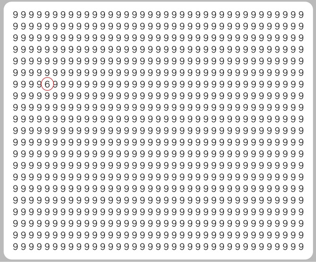 მთავარი ამოცანაა, ქვემოთ მოცემულ ციფრებში 1 განსხვავებული იპოვოთ. როგორც ტესტის ავტორები ამბობენ, საშუალო დრო 15 წამია, 10 წამზე ნაკლებ დროში განსხვავების პოვნას კი გამორჩეული აზროვნებისა და მეხსიერების მქონე ადამიანები ახერხებენ. შედეგები გაგვიზიარეთ კომენტარებში.