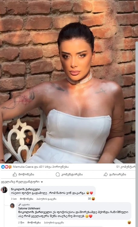 ახლახან კი, სალომე უშხვანმა „ფეისბუქის“ პირად გვერდზე ახალი ფოტო გამოაქვეყნა, რომელსაც ნიკოლოზ ქართველი კომენტარით გამოეხმაურა.