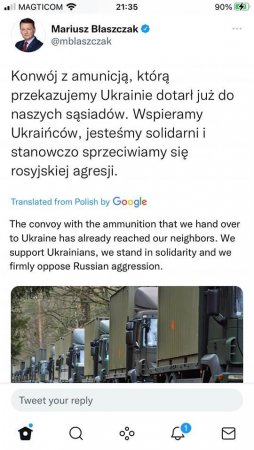 პოლონეთმა სახმელეთო გზით უკრაინისთვის შეიარაღებისა და ტყვია-წამლის მიწოდება დაიწყო. ინფორმაციას პოლონეთის თავდაცვის მინისტრი ტვიტერზე ავრცელებს და ფოტოსაც აქვეყნებს.