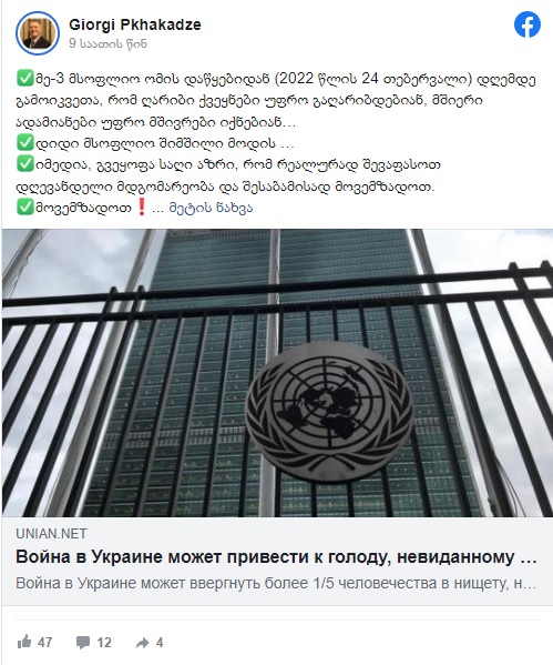 "მე-3 მსოფლიო ომის დაწყებიდან (2022 წლის 24 თებერვალი) დღემდე გამოიკვეთა, რომ ღარიბი ქვეყნები უფრო გაღარიბდებიან, მშიერი ადამიანები უფრო მშივრები იქნებიან…